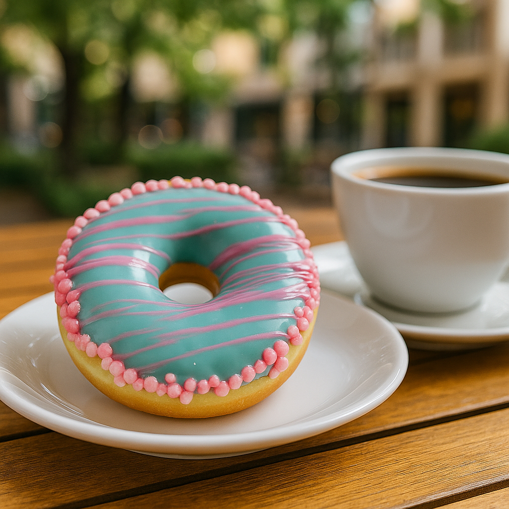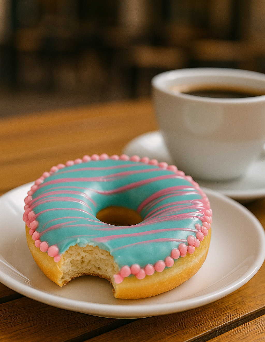 Bu donut, canlı mavi rengi ve eşsiz lezzetiyle minik gurmelerin favorisi olmaya aday. Her ısırıkta, yumuşacık ve havadar donut hamuru, baloncuk sakızının o neşeli ve tatlı aromasıyla buluşuyor. Adeta bir rüyadan çıkmış gibi görünen bu donut, hem gözlere hem de damaklara hitap ederek neşe dolu anlar yaşatıyor.
